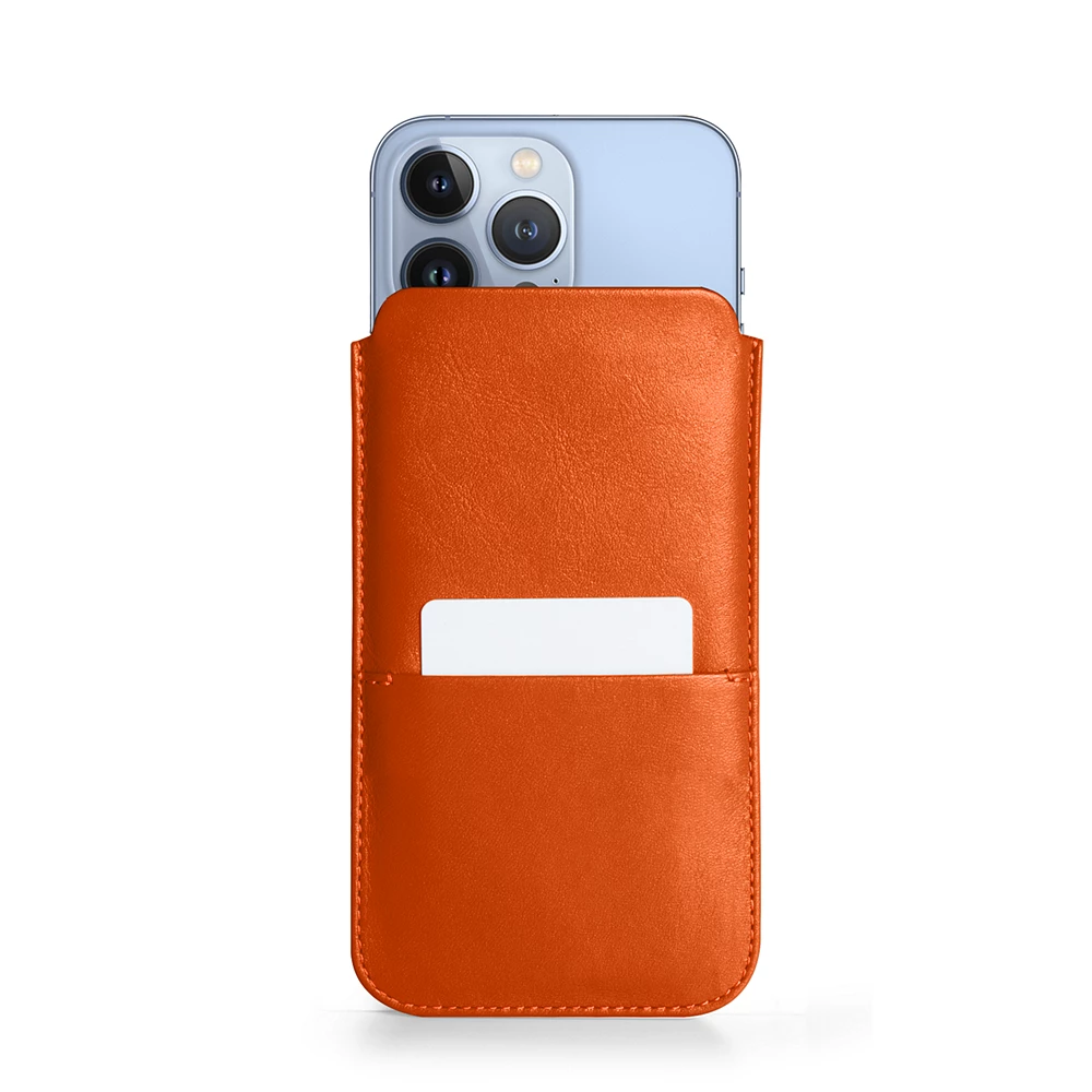 Etui mit Fach für iPhone 13 Pro Max Orange  - Glattleder