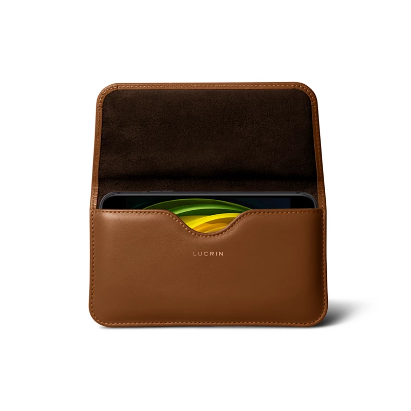 Dieses Gürteletui wurde für alle entworfen, die viel draußen arbeiten oder häufig unterwegs sind. Ihr iPhone SE ist stets griffbereit an Ihrem Gürtel befestigt. Dank zwei Magnetverschlüssen ist Ihr iPhone sicher verstaut, auch wenn Sie in Bewegung sind. Das halbfeste Design aus Leder wird mithilfe von zwei Schlaufen an der Rückseite, durch die Sie Ihren Gürtel (maximal 4 cm breit) ziehen, an letzterem befestigt. Einfach und sehr praktisch. Diese Hülle kann mit einer einzigartigen Gravur und/oder kontrastierenden Fadenfarbe personalisiert werden.