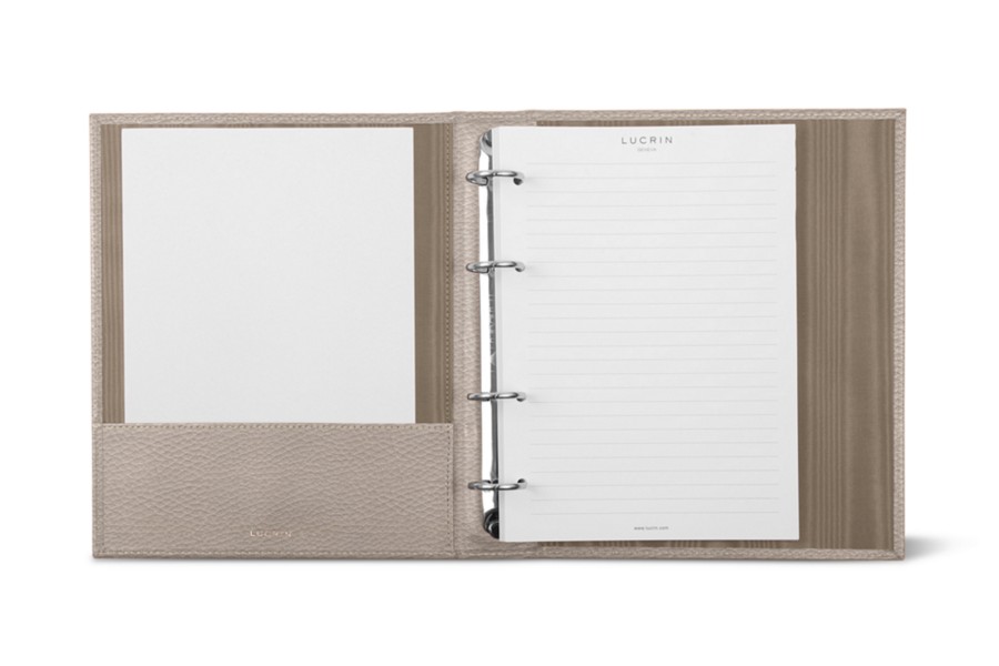 A5-Ringordner – 4 Ringe (100 Blätter) - Hellbraun - Genarbtes Leder