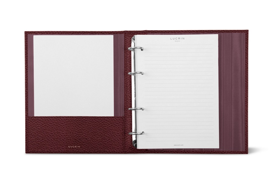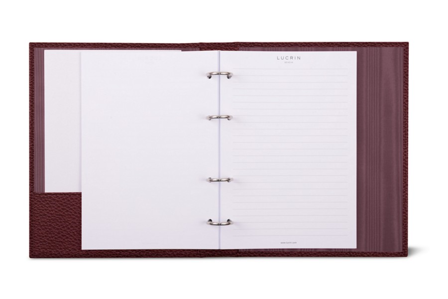 A5-Ringordner – 4 Ringe (100 Blätter) - Weinrot - Genarbtes Leder