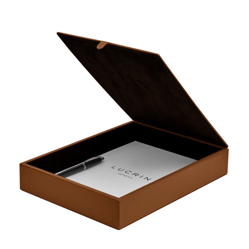Diese große A4-Aufbewahrungsbox besteht aus einem Holzboden und ist mit hochwertigem Leder ummantelt. Ihre wichtigen Dokumente und wertvollen Andenken werden in dieser eleganten Box sicher aufbewahrt. Der Innenraum ist mit hochwertiger Mikrofaser ausgekleidet, damit Ihre Gegenstände nicht zerkratzt werden. Dies ist die perfekte Box, um Ihre wertvollen Besitztümer stilvoll und sicher aufzubewahren und gleichzeitig einen Hauch von Luxus in Ihr Zuhause oder Büro zu bringen. Verwöhnen Sie sich selbst oder jemanden, den Sie lieben, mit der großen Auswahl an Farben und Personalisierungsoptionen, die für jedes Zuhause oder Büro geeignet sind.