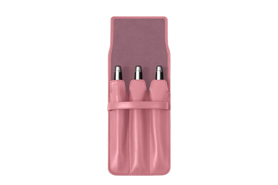 Etui für 3 Stifte - Rosa - Glattleder