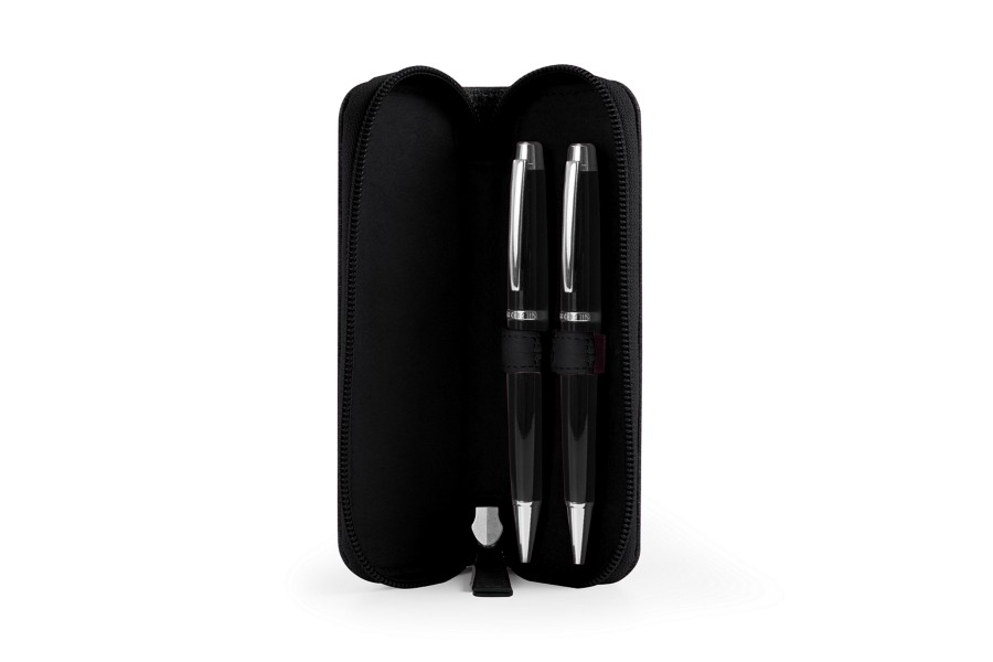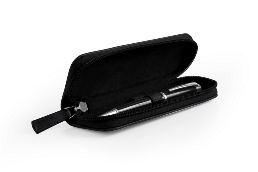 Täschchen für 2 Füllfederhalter mit Reißverschluss - Schwarz - Pflanzlich Gegerbtes Leder