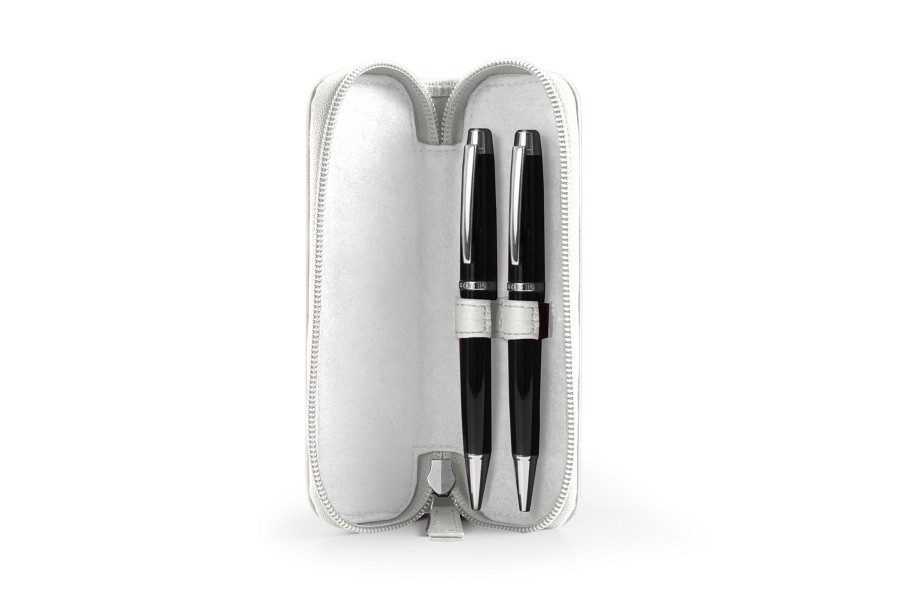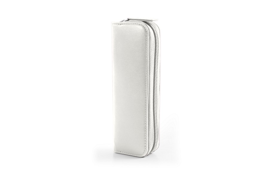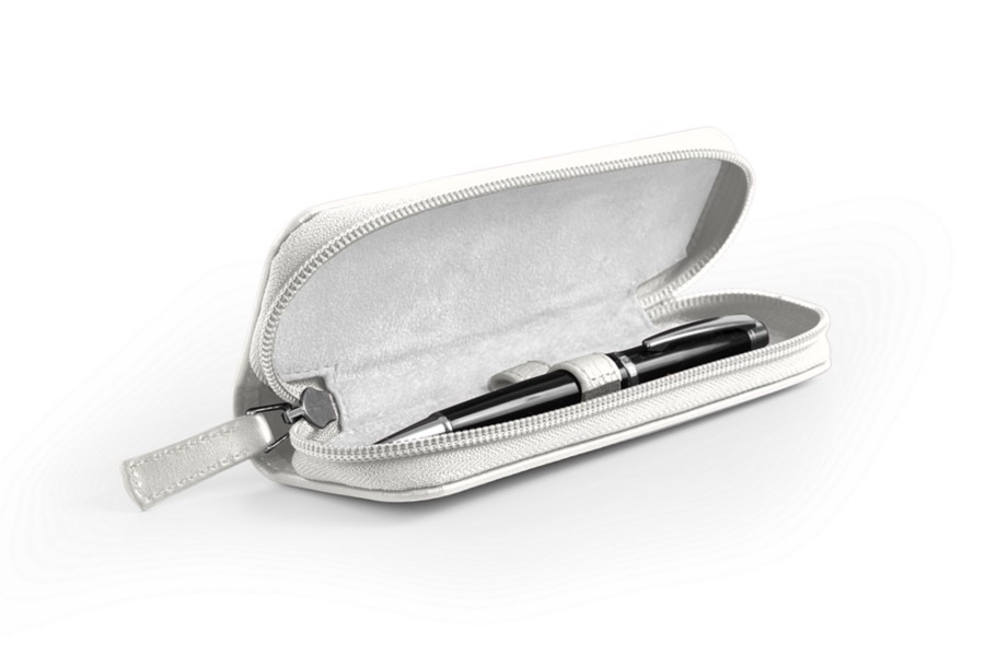 Täschchen für 2 Füllfederhalter mit Reißverschluss - Weiß - Glattleder