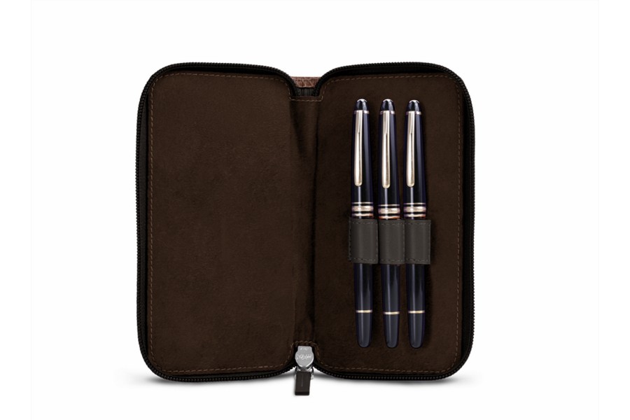 Etui 3 Füllhalter Zippé. Elegantes Täschchen für 3 Füllfederhalter mit Reißverschluss. Innenschlaufe zum Befestigen des herausziehbaren Füllfederhalters. Perfekt geeignet für dünne, mittlere und dicke Füllfederhalter. Maximale Länge des Füllfederhalters: 14,5 cm Wird ohne. Füllfederhalter verkauft. Abmessungen geschlossen: 8 x 17 x 2.5cm.