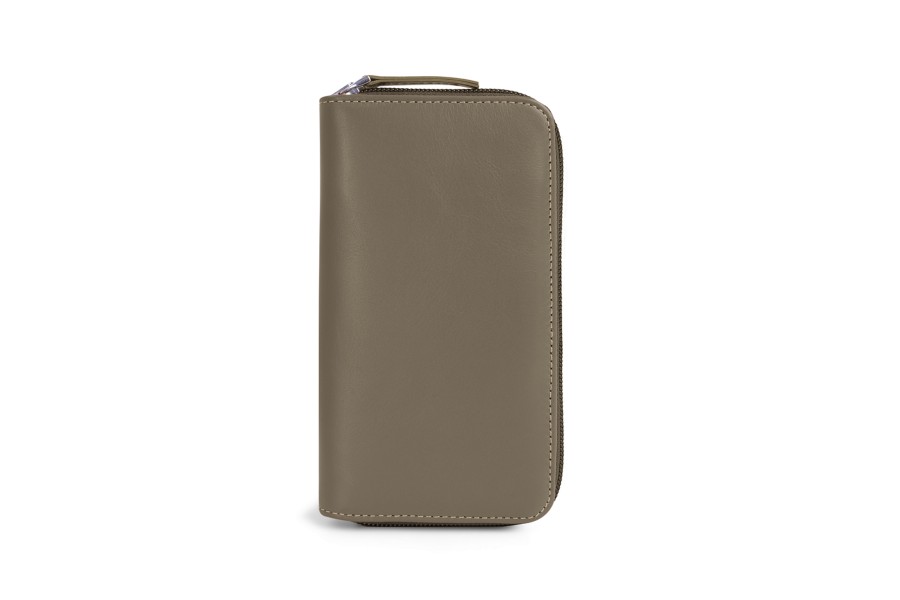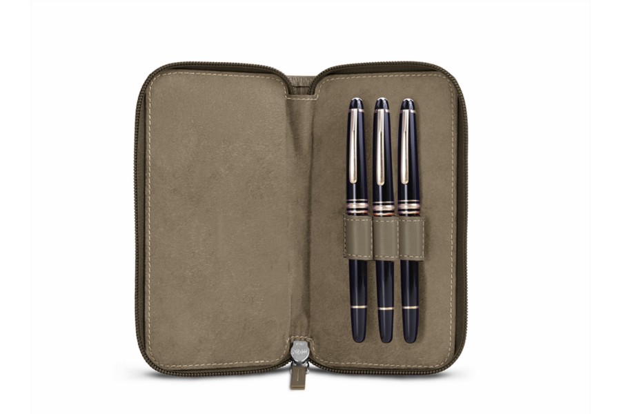 Täschchen für 3 Füllfederhalter mit Reißverschluss - Dunkeltaupe - Glattleder