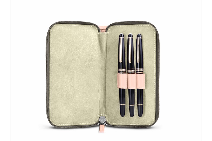 Täschchen für 3 Füllfederhalter mit Reißverschluss - Nude - Glattleder
