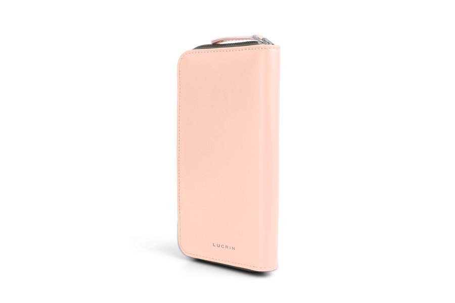 Genarbtes Rindsleder ist bei Luxuslederwaren sehr gefragt, insbesondere für Gepäckstücke. Die von Lucrin ausgewählte Narbung ist eher leicht, aber verleiht dem Material seine fühlbar besondere Oberfläche. Dieses Leder ist sehr widerstandsfähig und weniger empfindlich gegenüber Kratzspuren im Alltag.