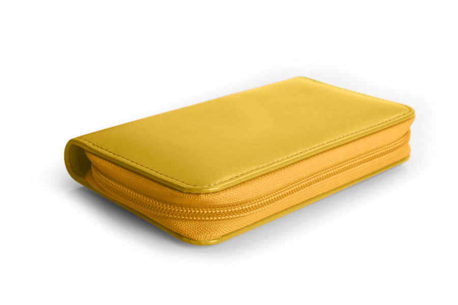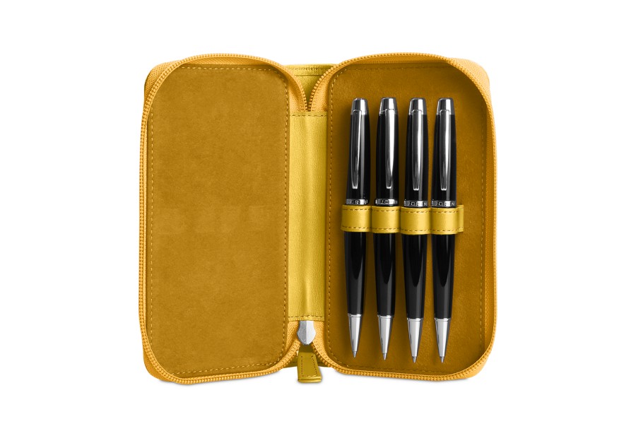 Täschchen für 4 Füllfederhalter mit Reißverschluss - Sonnengelb - Glattleder