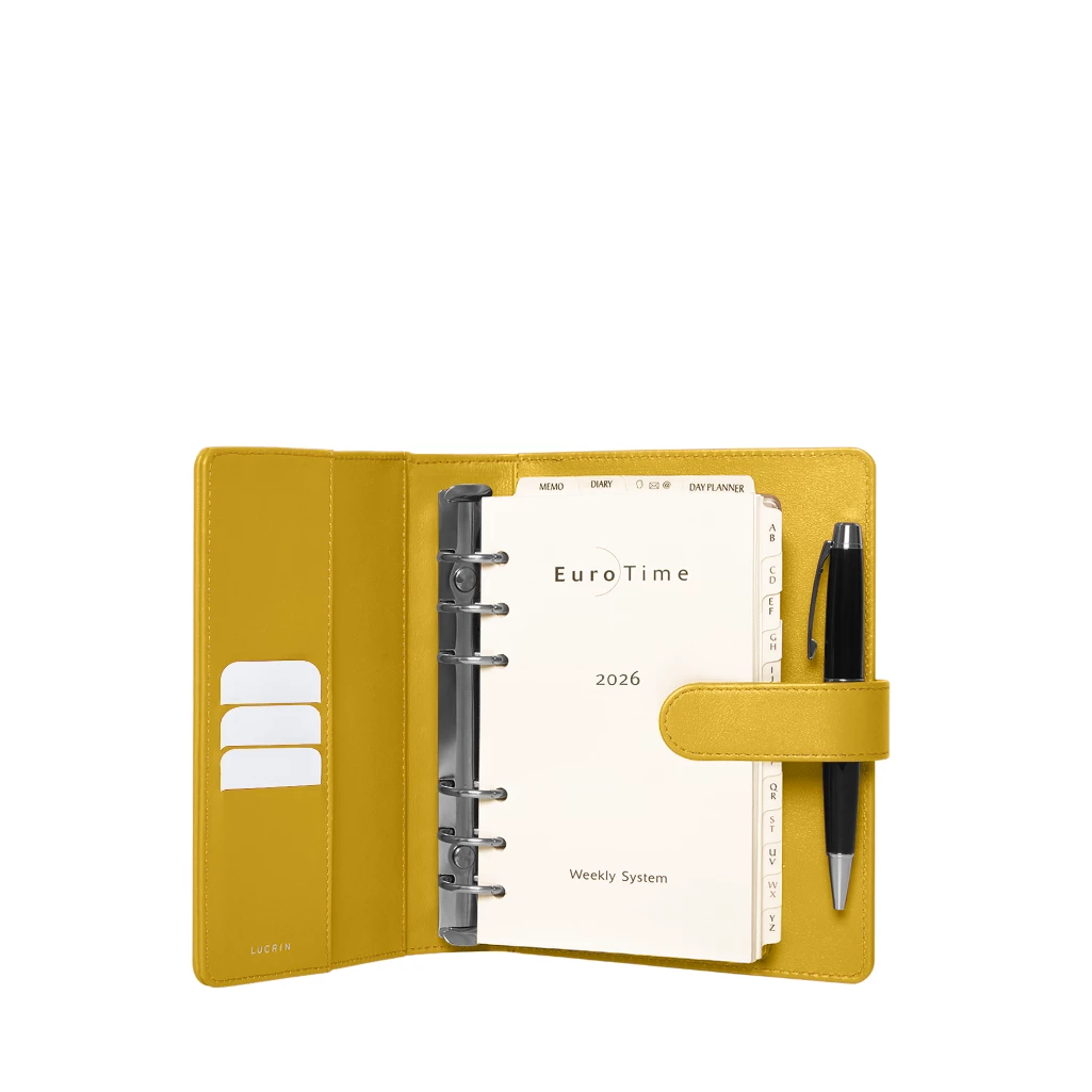 Organizer Medium 2026 aus Napparindsleder mit sechs vernickelten Ringen.