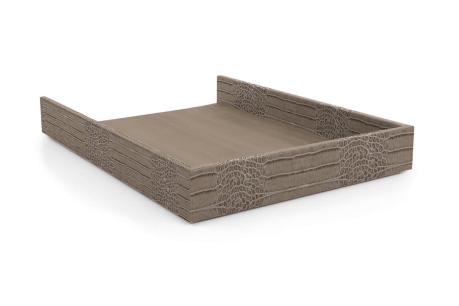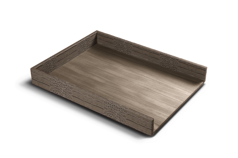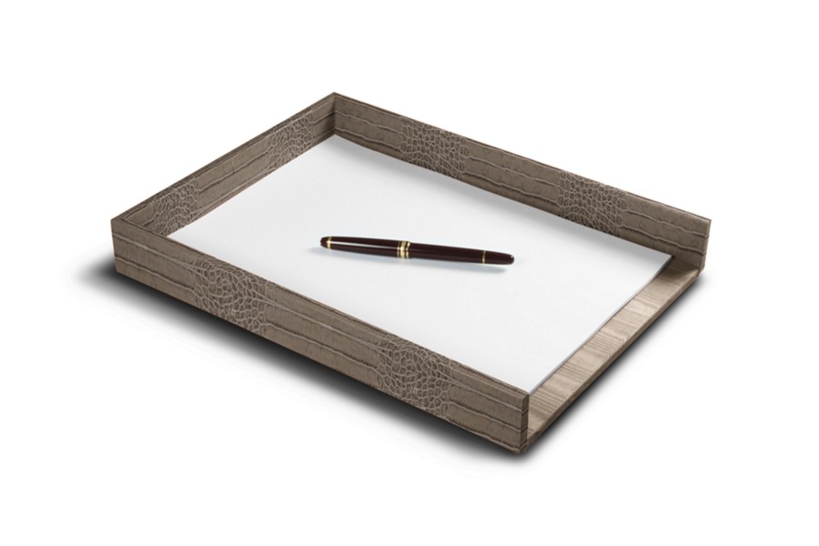 DIN A4-Briefablage - Hellbraun - Leder in Krokodil- Optik