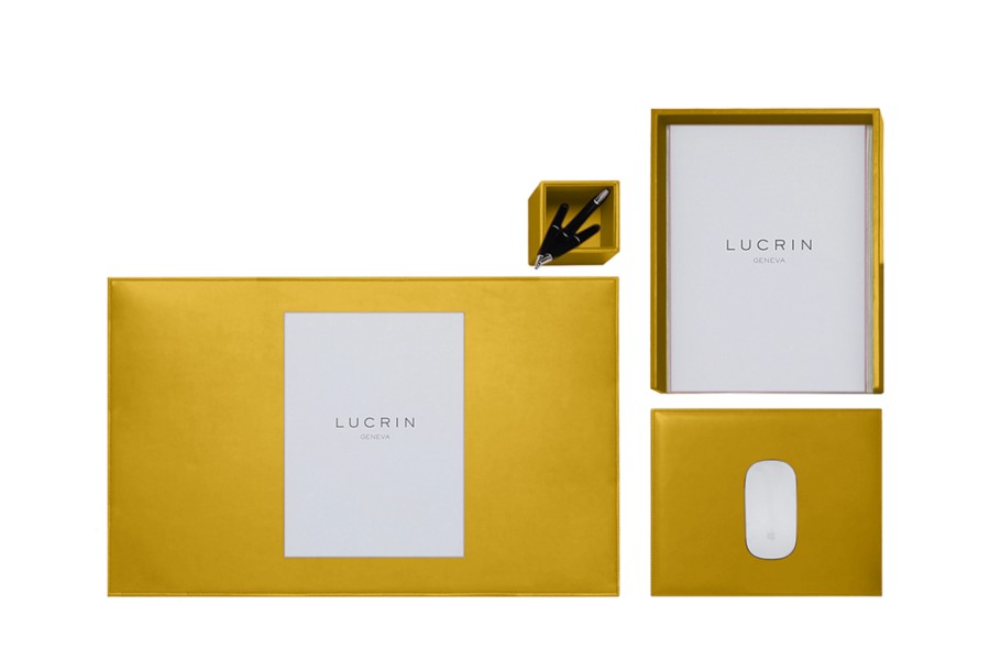 «Platinum Edition» Schreibtischset - Sonnengelb - Glattleder