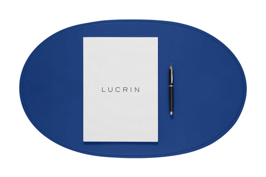 Ovale Schreibtichunterlage 65 x 40 cm - Königsblau - Glattleder