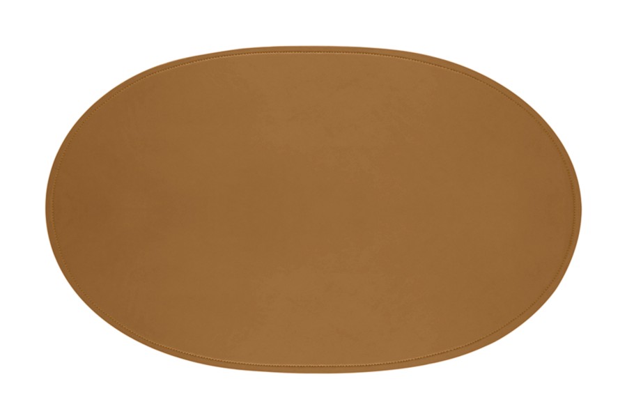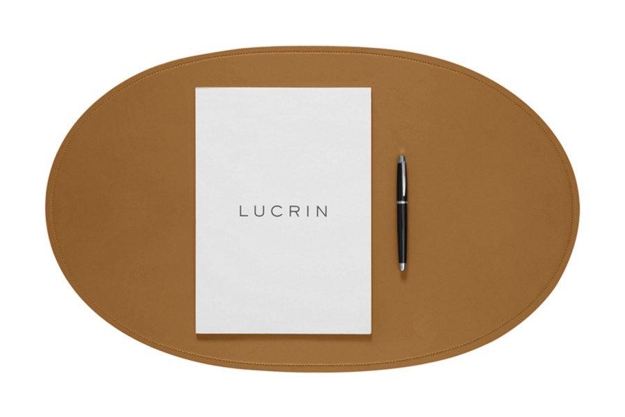 Schlichte, große, optisch ansprechende, ovale Schreibtischunterlage aus hochwertigem, vollnarbigem Rindsleder.