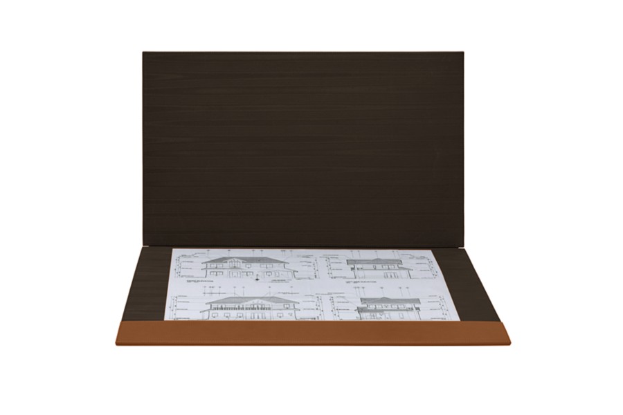 Die wohl edelste Schreibunterlage aus Leder für luxuriöse Büroräume. Da sie sich aufklappen lässt, können Sie im Handumdrehen zum Beispiel Ihre vertraulichen Dokumente oder ihre aktuellen Arbeitsunterlagen hineinlegen. So bleibt Ihr Schreibtisch für wichtige Geschäftstermine stets perfekt aufgeräumt. Dieses Luxusbüroaccessoire kann mit Ihren Initialen oder dem Logo Ihres Unternehmens personalisiert werden. Die Innenseite ist aus gleichfarbigem Moirégewebe gefertigt.