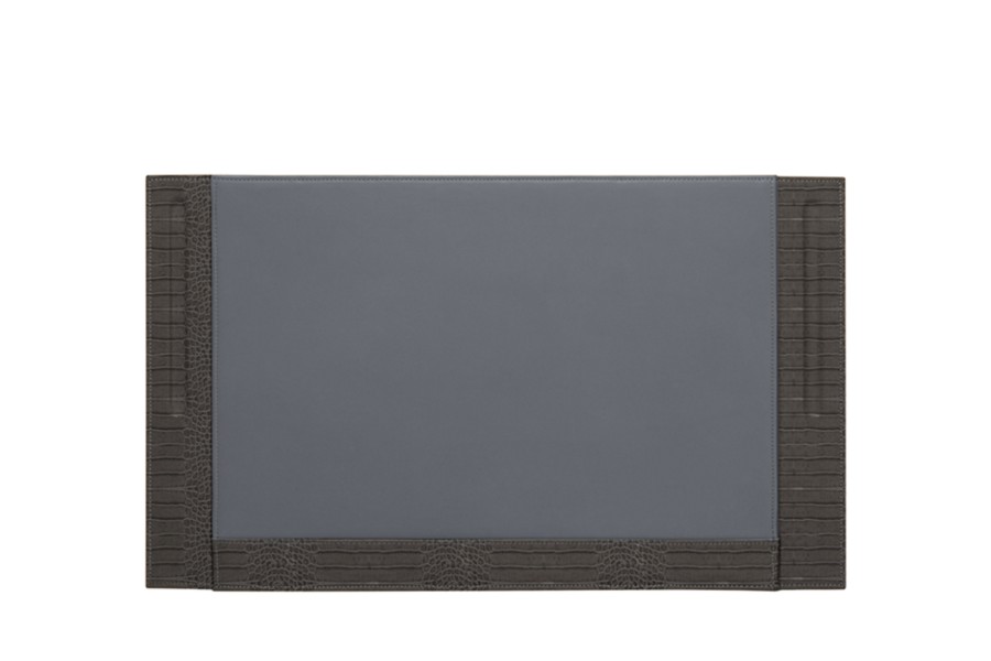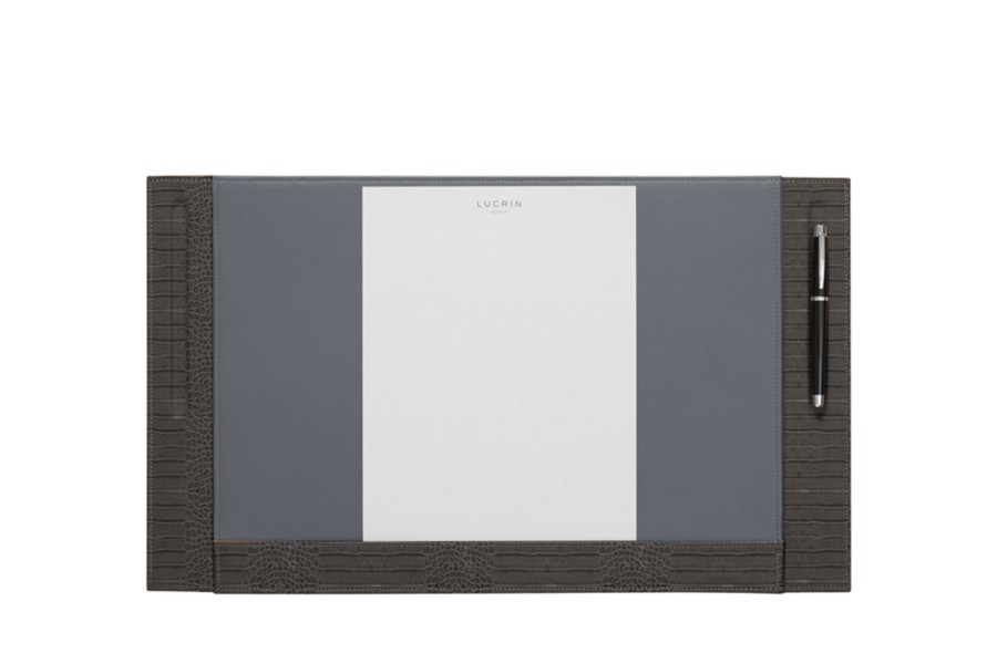 Schreibtischunterlage mit 2 Stifthalterungen - Mausgrau - Leder in Krokodil- Optik