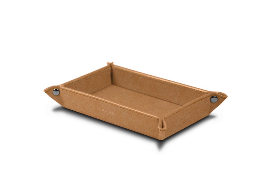 Hier haben wir das kleinste Mitglied unserer rechteckigen Taschenleerer von Lucrin. Sein relativ kleines Format ist ideal, um beispielsweise Ihren Schmuck oder das Kleingeld aus Ihren Taschen abzulegen, bevor Sie ins Bett gehen. Der kleine Leder-Taschenleerer ist auch ein schönes Geschenk an Menschen, die Ihnen lieb sind, besonders wenn Sie das Stück über die zahlreichen Optionen (Farben, Lederart, Initialen, Garn etc.) individualisieren.