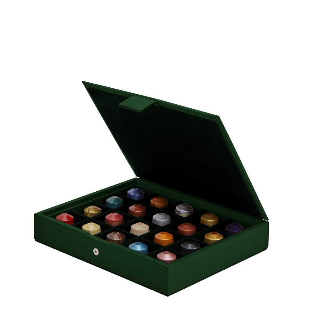 Diese prächtige Präsentationsbox für Nespresso-Kapseln ist aus echtem Leder gefertigt. Heißen Sie Ihre Gäste willkommen, indem Sie ihnen eine der 20 Kapseln in dieser wunderschönen Kaffeekapselschachtel zur Auswahl anbieten.