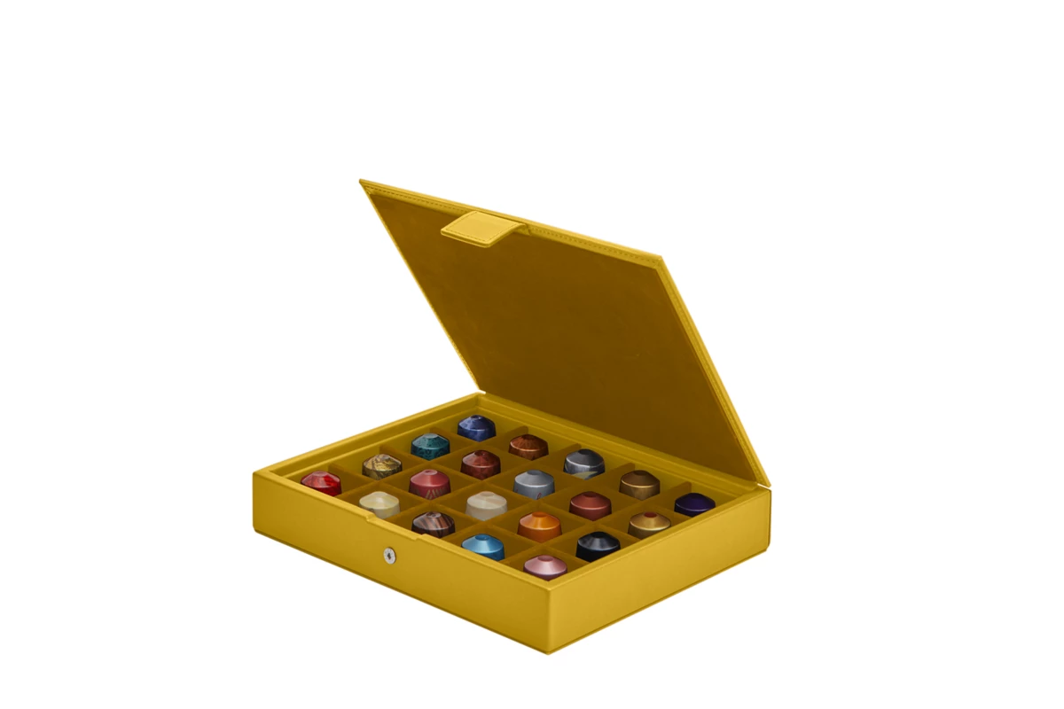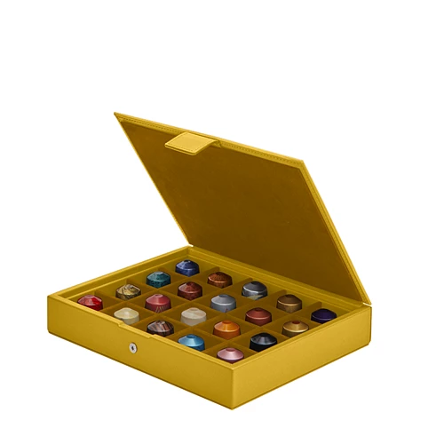 Diese prächtige Präsentationsbox für Nespresso-Kapseln ist aus echtem Leder gefertigt. Heißen Sie Ihre Gäste willkommen, indem Sie ihnen eine der 20 Kapseln in dieser wunderschönen Kaffeekapselschachtel zur Auswahl anbieten.