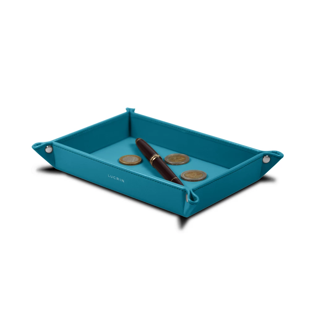 Diese rechteckige Ordnungsablage aus Leder gehört zu den Bestsellern in unserer Kollektion von Aufbewahrungsablagen. Ihr rechteckiges und minimalistisches Format erlaubt es Ihnen, Ihr Smartphone, Münzen, Notizen, Ihren Kugelschreiber, Autoschlüssel und so weiter aufzubewahren. Sie können somit die Inhalte Ihrer Taschen leeren und in dieser eleganten Lederablage, die auf dem Pult in der Nähe der Tür oder auf Ihrem Schreibtisch platziert werden kann, aufbewahren. Auf diese Weise können Sie sichergehen, alle wichtigen Dinge auf einmal mitzunehmen, wenn Sie das Zimmer oder das Haus verlassen. Diese Ordnungsablage aus Leder ist in einer breiten Auswahl von Farben und Lederarten erhältlich.