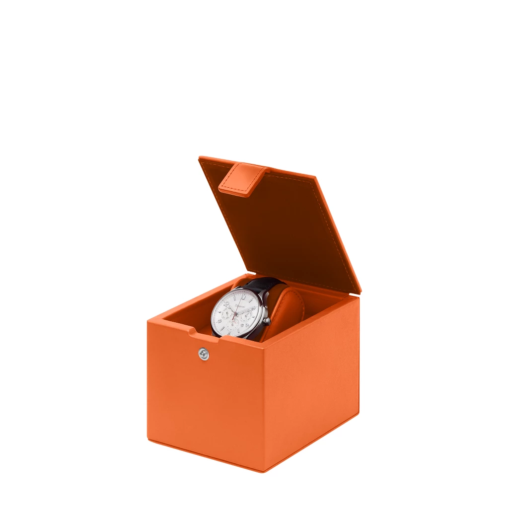 Es gibt eindeutig keinen besseren Schutz für Ihre Luxusuhr als diese Lederbox für 1 Uhr. Sie besteht aus einer festen Holzstruktur, die meisterhaft mit echtem Leder bezogen ist und besitzt ein entnehmbares Uhrenkissen für Ihre kostbarste Uhr im Inneren. Für maximale Sicherheit sorgt ein zusätzlicher Druckknopfverschluss. Das edle Uhrenetui kann mit einer wunderschönen Gravur personalisiert werden und ist in einer fantastischen Auswahl an Farben erhältlich.