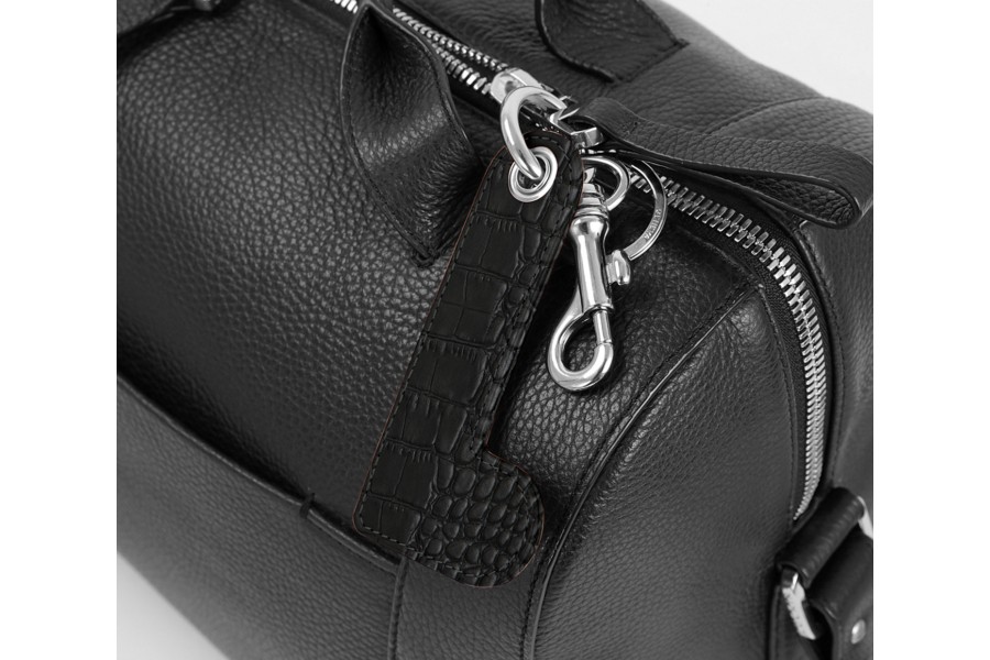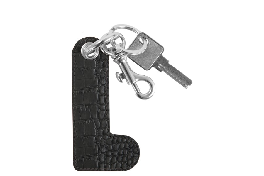Oversized keychain consisting of an L-shaped leather cut-out, 2 rings and a high-end carabiner hooked through an eyelet. This key holder is ideal to keep all your keys and/or can be used as a trendy bag accessory, especially as it comes in many leathers and colours. Pick the one keyring that suits your bag or looks.