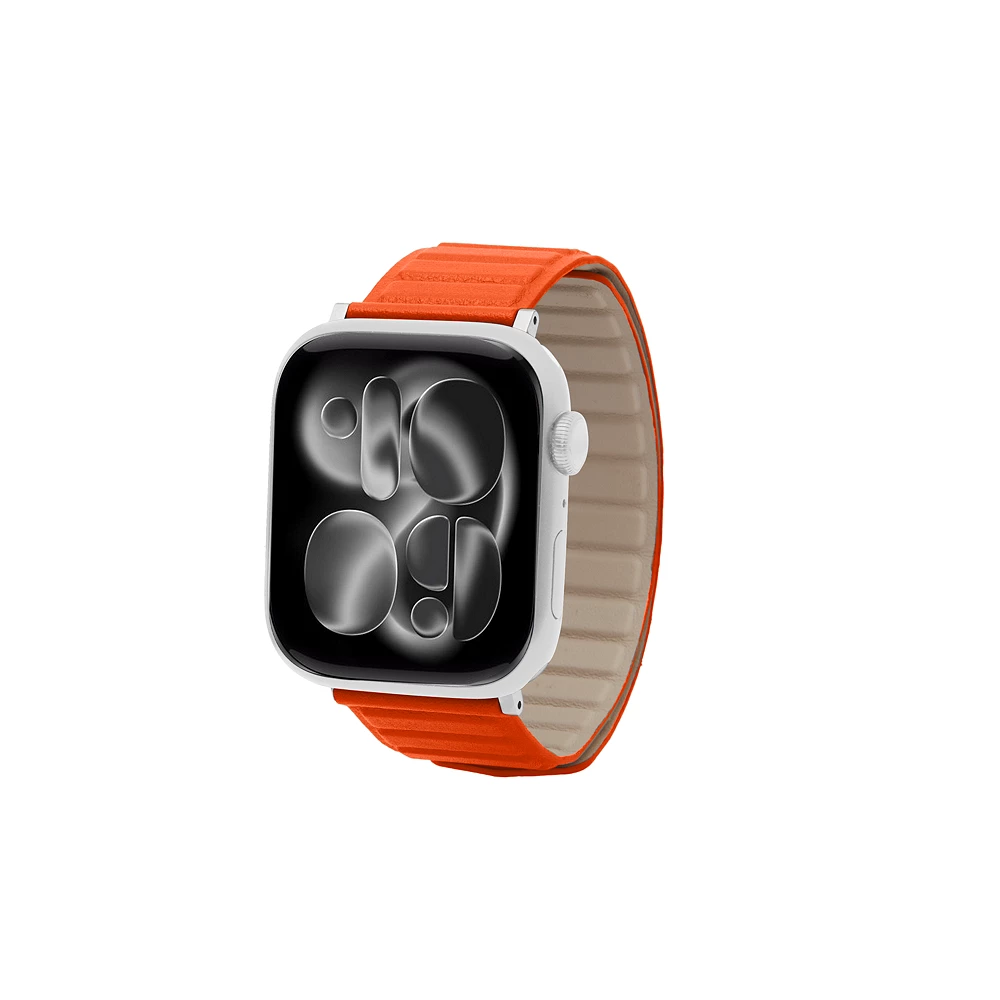 Magnetarmband – Apple Watch 42 mm – Silber Orange  - Glattes Kalbsleder