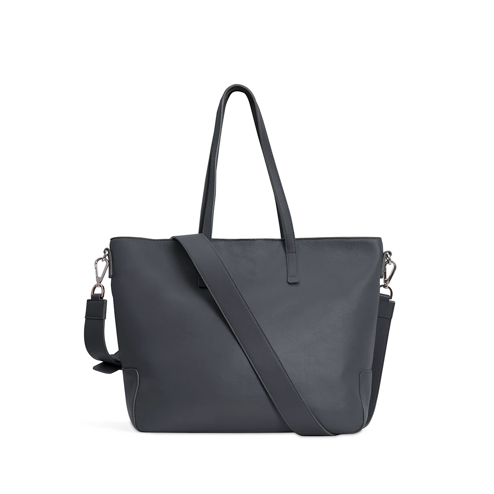 Shopper mit langem Riemen - L25 Mausgrau  - Glattleder