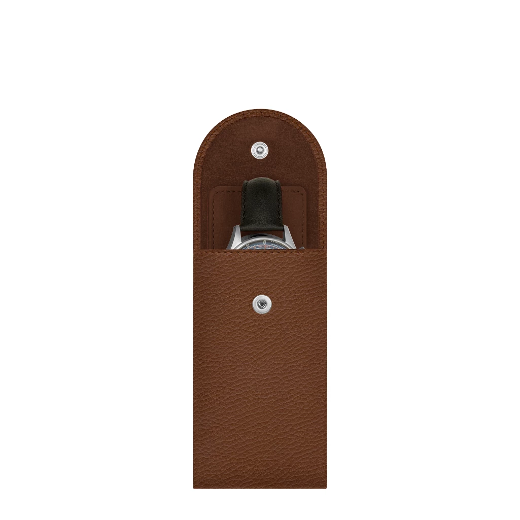 Egal, ob Sie Ihre Uhr einfach sicher aufbewahren oder mit auf Reisen nehmen möchten, Sie werden diesen praktischen Uhrenhalter lieben. Dank der kompakten Form und der Schutzwand aus Mikrofaser, die zwischen dem Uhrenboden und der Armbandschnalle sitzt, ist Ihre Uhr vor allem unterwegs sicher verstaut. Das elegante Uhrenreiseetui aus Leder lässt sich in einer großen Auswahl an Farben und Lederarten, die Sie zum Beispiel auch mit einer schönen Gravur verzieren können, vollständig personalisieren. Klappenverschluss mit einem versteckten Druckknopf.